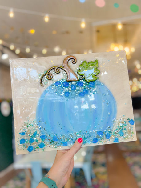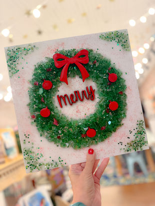 Create a beautiful framed glass art piece using our hand-crafted frames, crushed glass, embellishments, and resin.